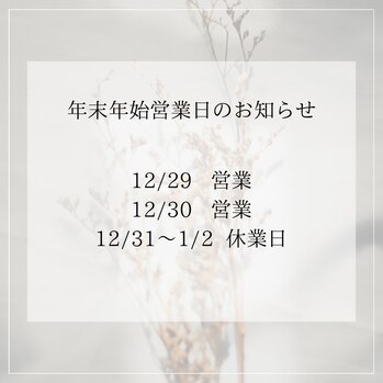 遅くなりましたが、年末年始の営業日のお知らせです。
